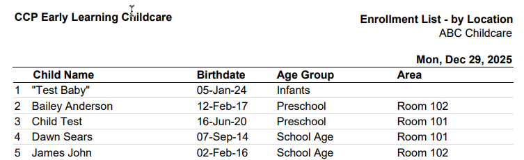 - Enrollment List – by Age Group